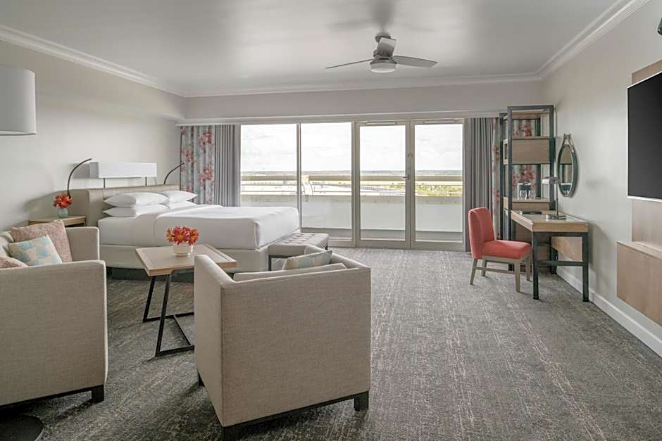 An airport-adjacent base that blends travel practicality with a touch of Florida sunshine, perfect for layovers or longer stays. The rooftop pool is heated and adults-only, offering a sunny retreat after a day of flights. Outside, the terrace, garden, and balcony provide extra spaces to soak up the warm breeze and blue skies. For gatherings or business needs, on-site meeting and banquet facilities help keep plans on track, while a golf course adds a dash of recreation. Pets are welcome, though charges may apply.
